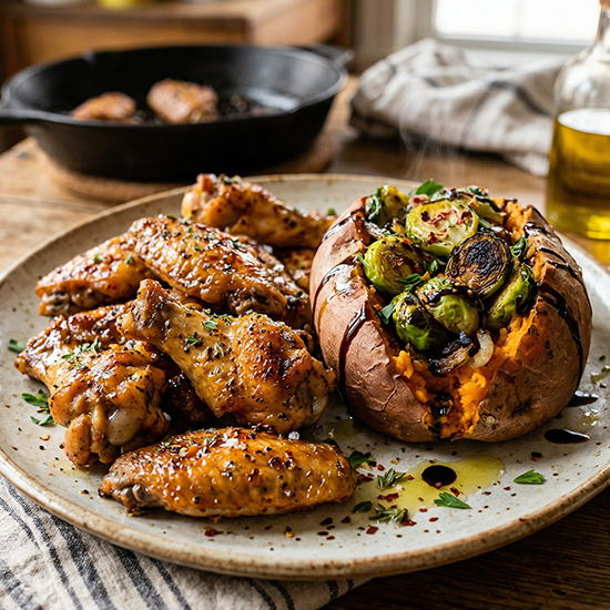 blog / SavjetiSastojci: pileća krilca batat prokulice 2 kašike sirupa od agave 2 kašike jabukovog sirćeta 5 kašika maslinovog ulja...