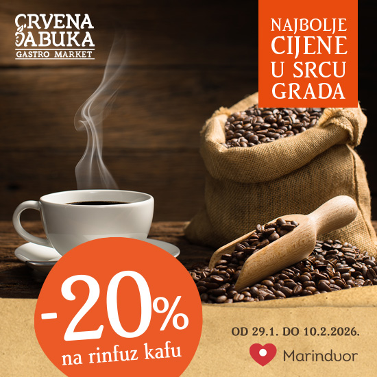 Od 29.1. do 11.2.2026. najbolje cijene u srcu grada donose ti -20% popusta na rinfuz i mljevenu kafu......