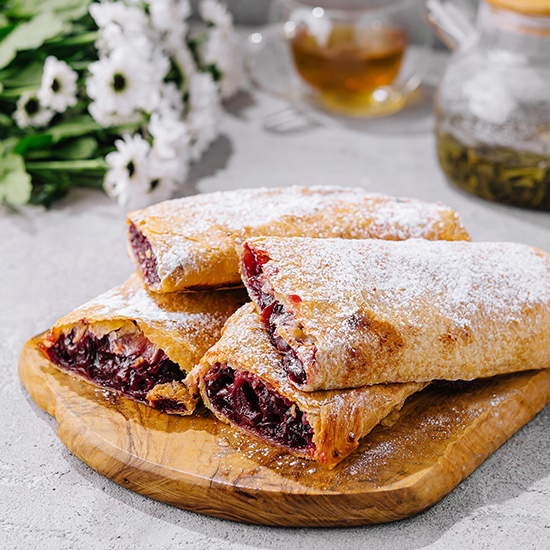 TipsIngredients: 2 pastry sheets 100 g blueberries 1 tablespoon ground biscuits 1 tablespoon ground walnuts 2 tablespoon...