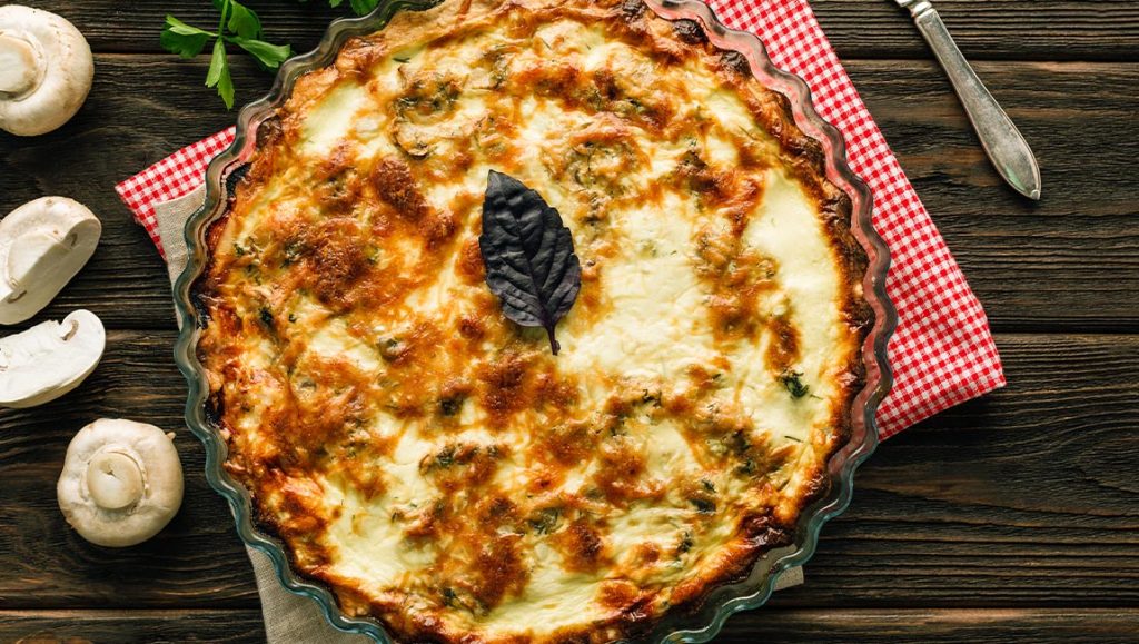 Preheat the oven to 200°C. Slice the potatoes thinly and boil them. Cut the chicken into cubes, season it, and coat it in flour, then sauté in a bit of oil until golden brown. Remove the chicken from the pan, then add the onion and mushrooms. Cook until the liquid evaporates, add the parsley, and sauté briefly. Pour in the cooking cream, stir, and remove from heat. Grease a heat-resistant baking dish with olive oil, then layer the ingredients as follows: a layer of potatoes, a layer of chicken, and a layer of mushrooms with the sauce. Bake for 20 minutes.