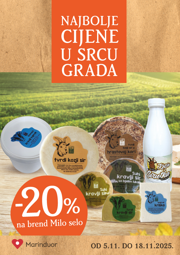 Od 5.11. do 18.11.2025, najbolje cijene u srcu grada donose ti popust od -20% na brend Milo selo.